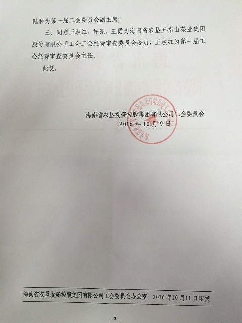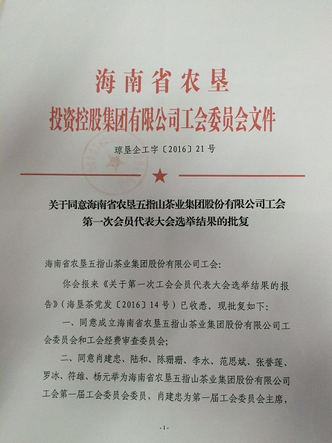 成立海南省农垦五指山茶业集团股份有限公司工会委员会和工会经费审查委员会的批复